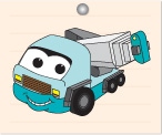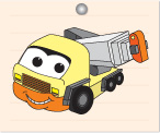 みんなこんにちは!ぼく「とらっくん」。どうろをはしっておもいにもつをもちあげて。いろんなところでかつやくするよ!まちでもみかけたことがあるんじゃないかな?みんな、じょうずにぬってね!